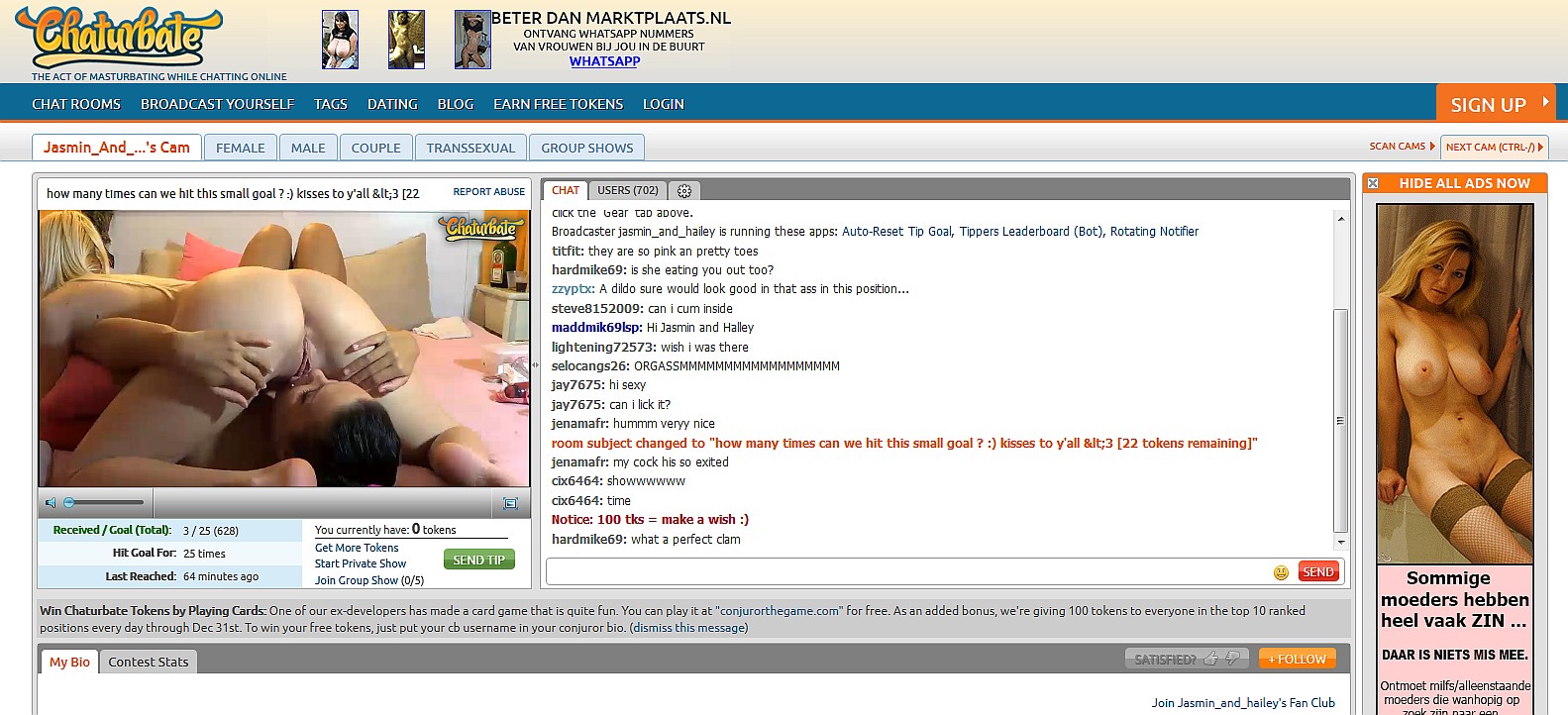 Chaturbate se řadí mezi nejznámější a nejúspěšnější livechaty současnosti. Desítky erotických show v kteroukoliv denní či noční dobu, k jejichž sledování není třeba žádná registrace, lákají milióny návtěvníků. Místnosti s více jak 5 000, či dokonce 10 0000 sexuchtivých zákazníků nejsou výjimkou.